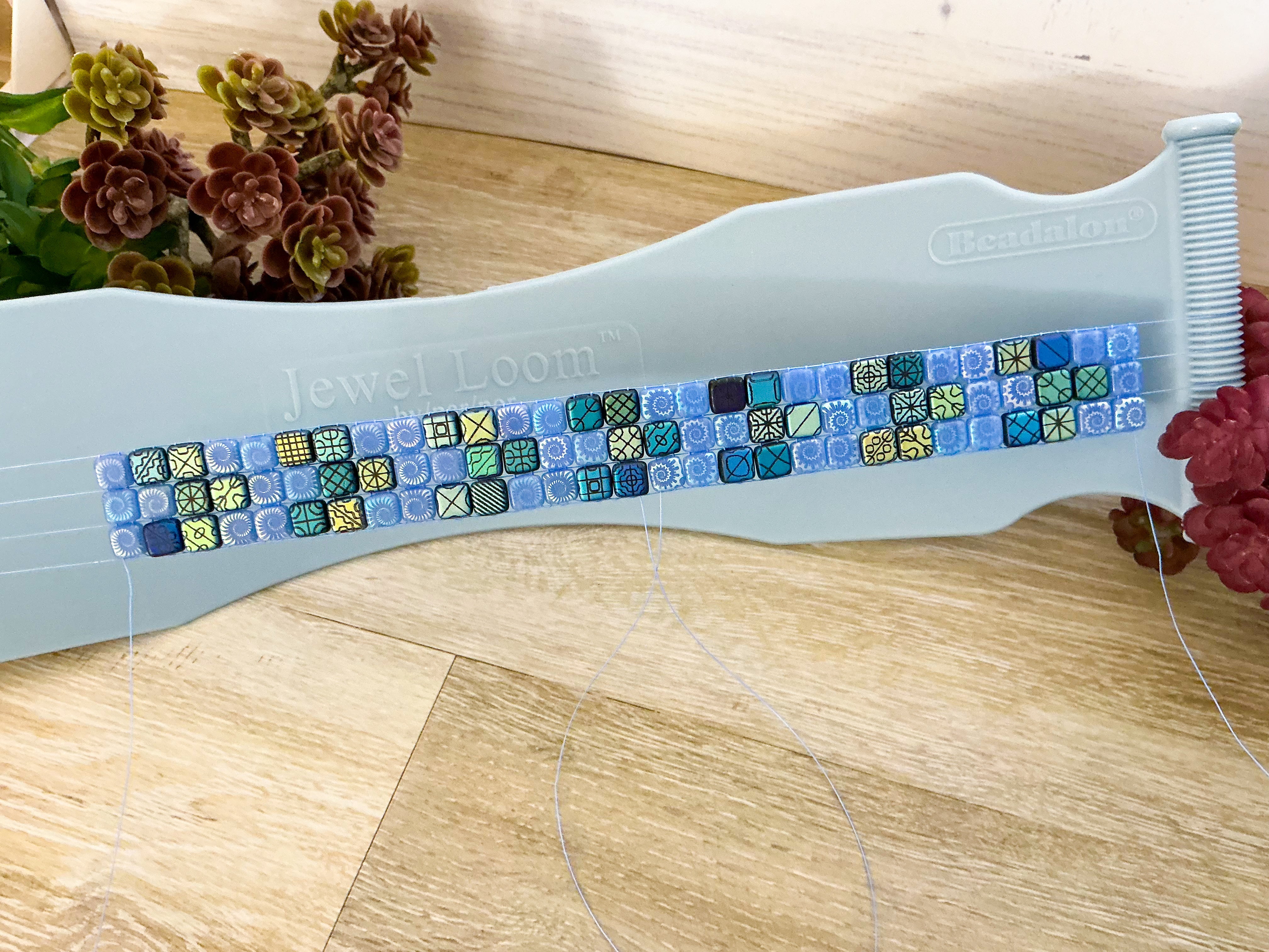 Lots of gorgeous beads that vary from month to month but usually includesCzech Glass Beads, MIYUKI Seed Beads or TOHO Seed Beads, Vintage Glass Button or Wood Buttons, Long Bugle Beads, Ceramic Beads, Printed Color PDF and How To Video that lives on the Jewel Loom YouTube Channel under the Playlist Creative Soul Edition