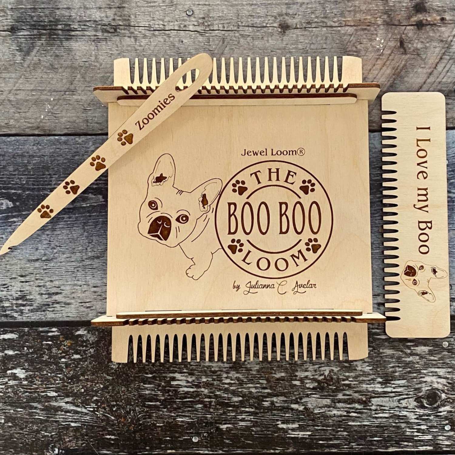 1 Boo Boo Loom, 1 Wood Needle and Wood Comb