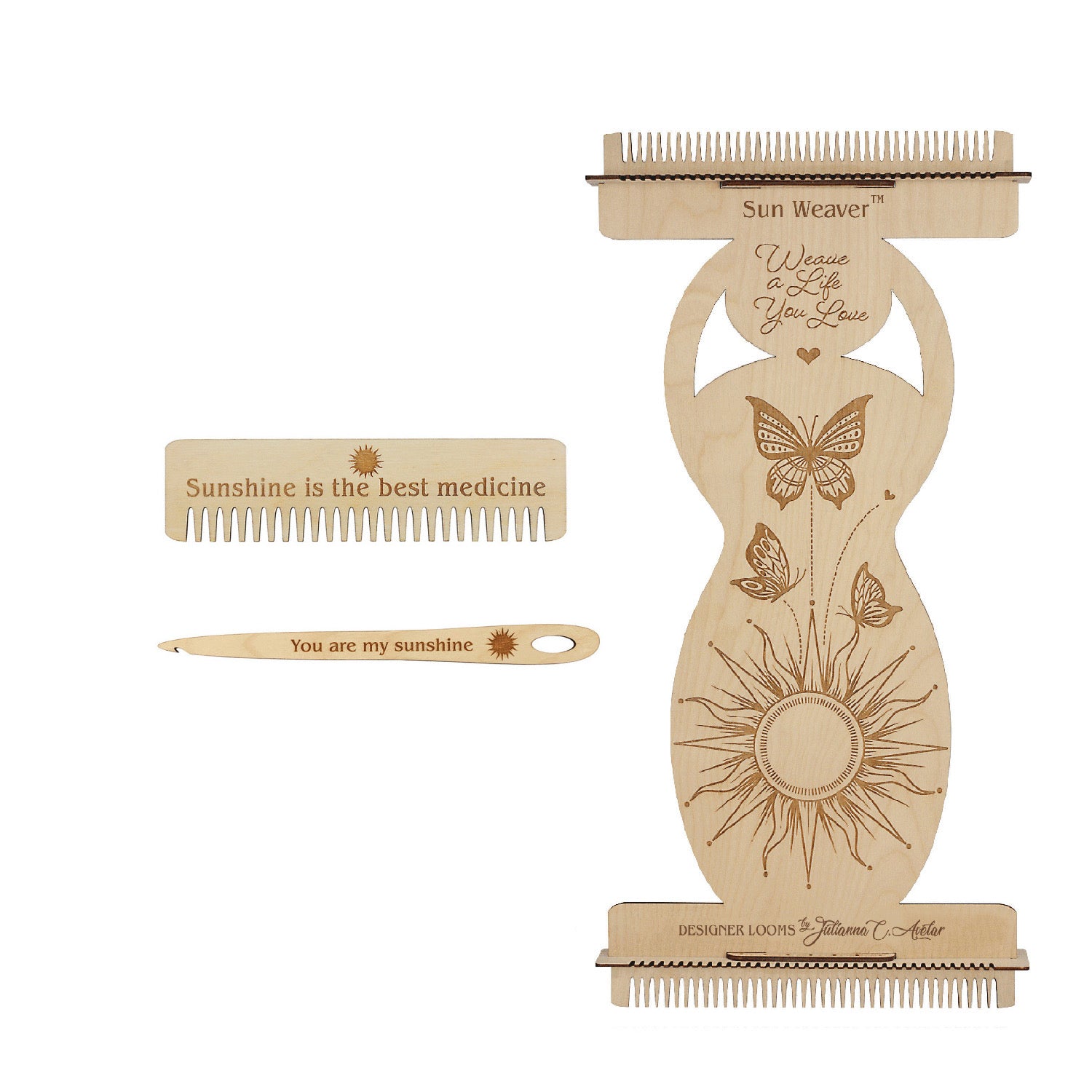 The Sun Weaver Loom was designed to enhance your weaving experience with extra width, length and multi sized grooves to create your jewelry, home décor, fashion and other creative projects.